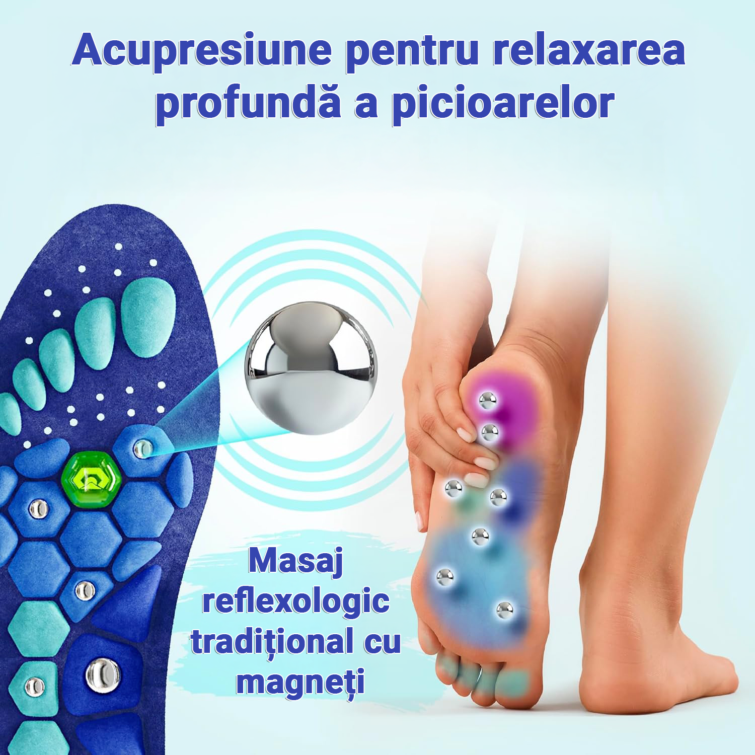 Descoperă tălpicii magnetici cu micro-acupresiune, inspirați din tehnici asiatice de stimulare a punctelor reflexe.