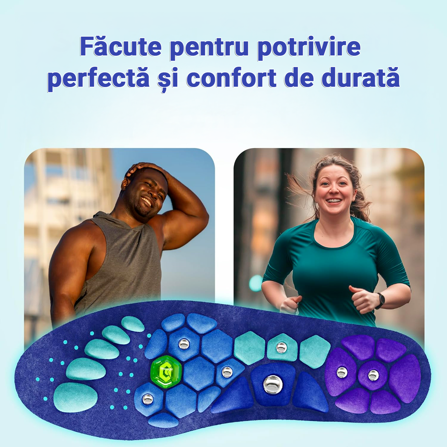 • Sistem de micro-acupresiune ce stimulează punctele cheie ale tălpii